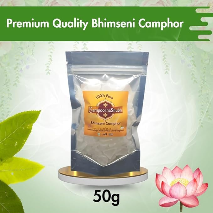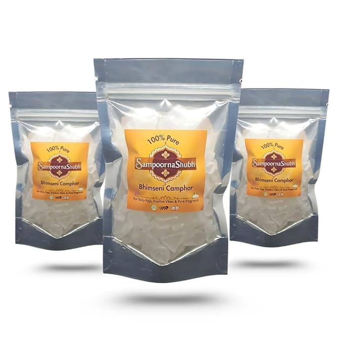SampoornaShubh Original Bhimseni Kapoor Pack of 3 | 50g Pouch Combo | Pure Camphor for Puja and Meditation | Natural Air Purifier | Daily Use